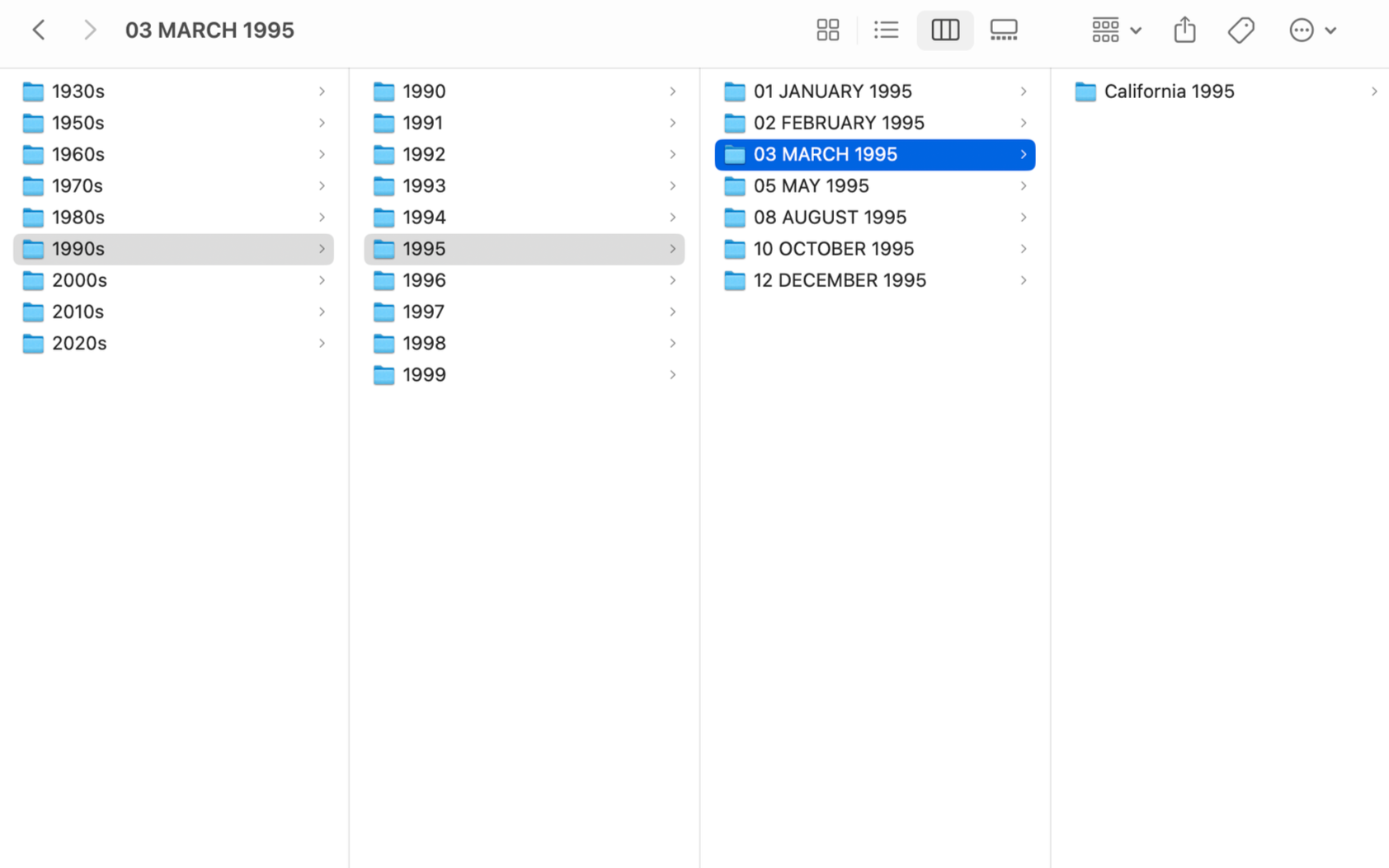 I'll organize your photos digitally and physically. Now that your printed photos are digitized, I’ll organize them chronologically on a USB drive, creating folders using the same event names we created together—making them easy to navigate. Your physical photos will also be sorted, but by decade and in archival photo boxes.